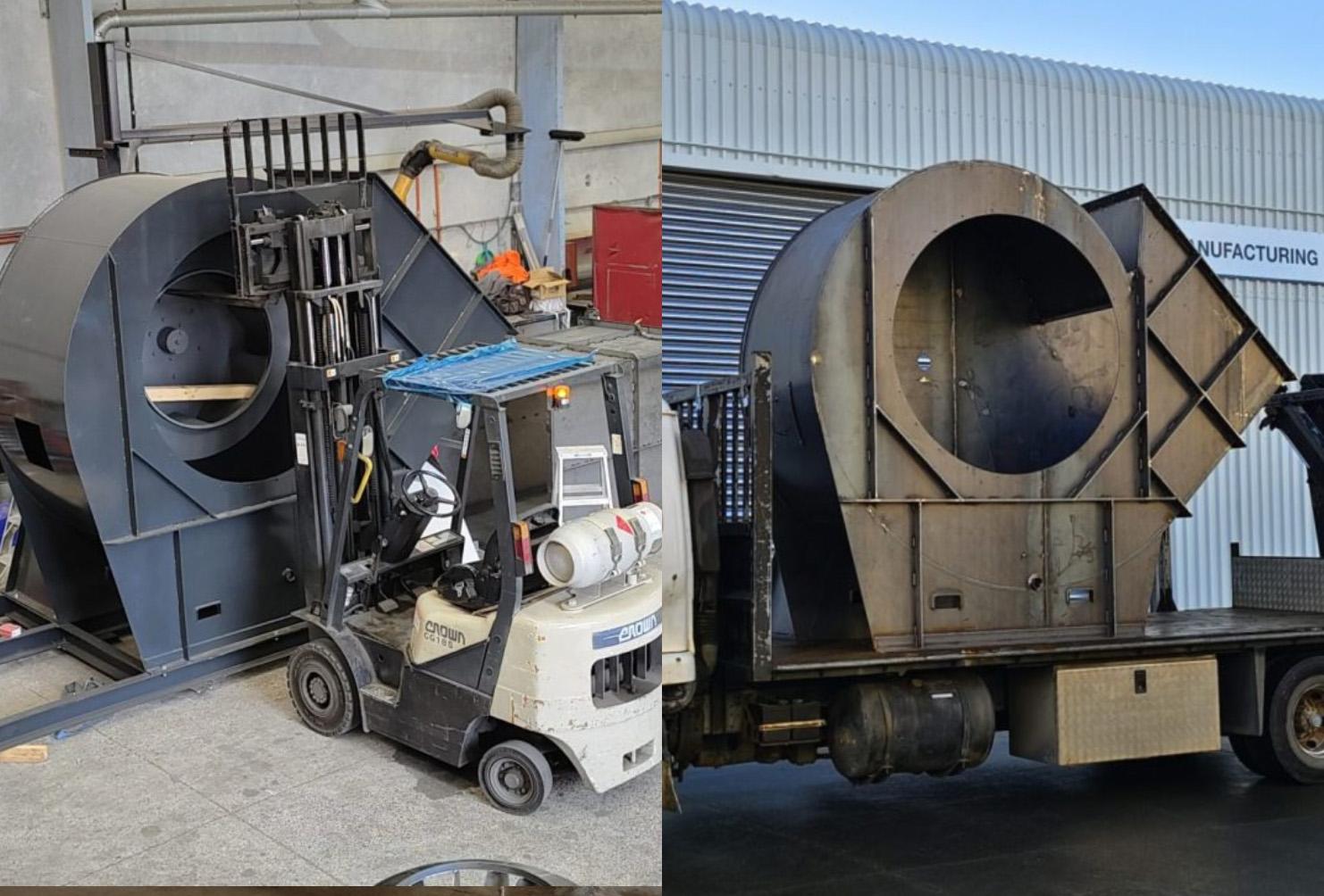 We Design and Manufacture Fans anywhere from 1000 m3/hr to 100,000 m3/hr, and they get pretty massive!. Handling something like this in a workshop is always a challenge, but we’ve been doing it for over 40 Years with no plans to stop. Sticking to our philosophy of NZ-Made, everything is Designed by us, Cut on our Laser, Folded / Rolled in-house, Welded and Painted by our team of expert Fabricators.