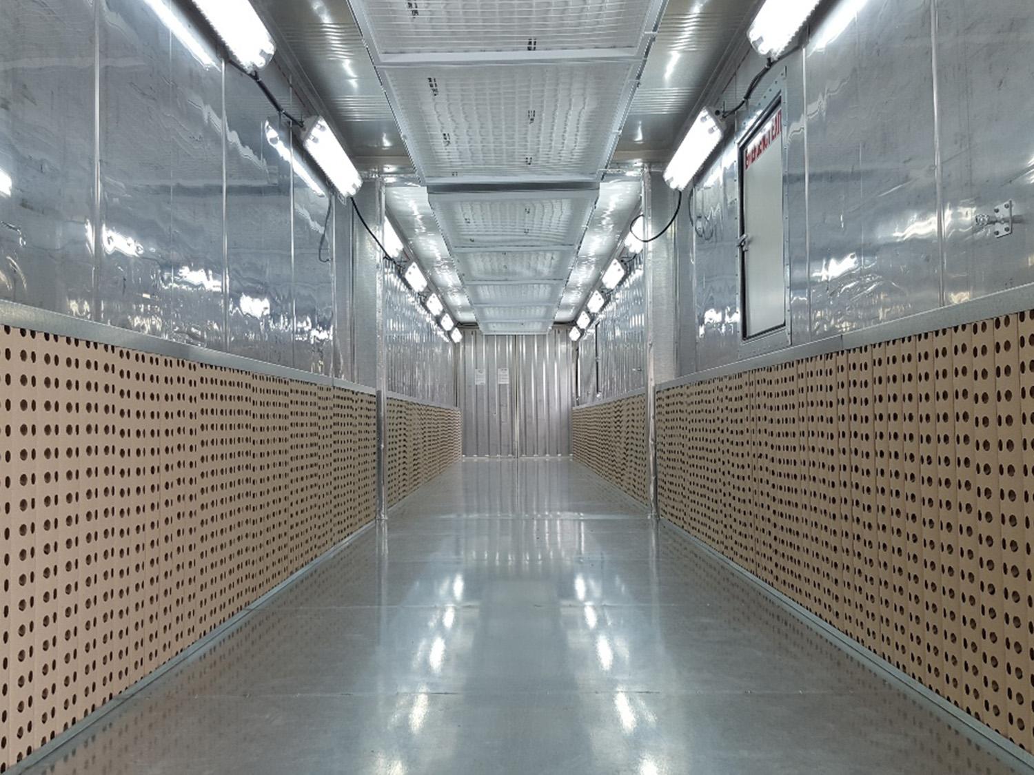 Designed for high-volume production, our on-floor down draft spray booths feature full-length ceiling filters and exhaust plenums on both sides. These booths are perfect for drive-through systems, allowing products to move seamlessly through to drying rooms or adjacent buildings. With heated spray and bake cycles and custom-built configurations, these booths enhance efficiency and productivity.