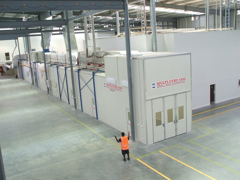 Our MULTI-CURE enclosed spray booths are built from fire-retardant FM-approved insulated panels, with extruded aluminium connectors for a sleek finish. These booths feature roof-mounted air handling equipment, reducing the required floor space while maintaining high performance. With indirect-fired stainless steel heat exchangers, you get clean, heated air without contamination. Available with natural gas, LPG, diesel oil, or electric heating, these booths also include LED lighting (800 lux minimum) and fully automated control systems for easy operation.